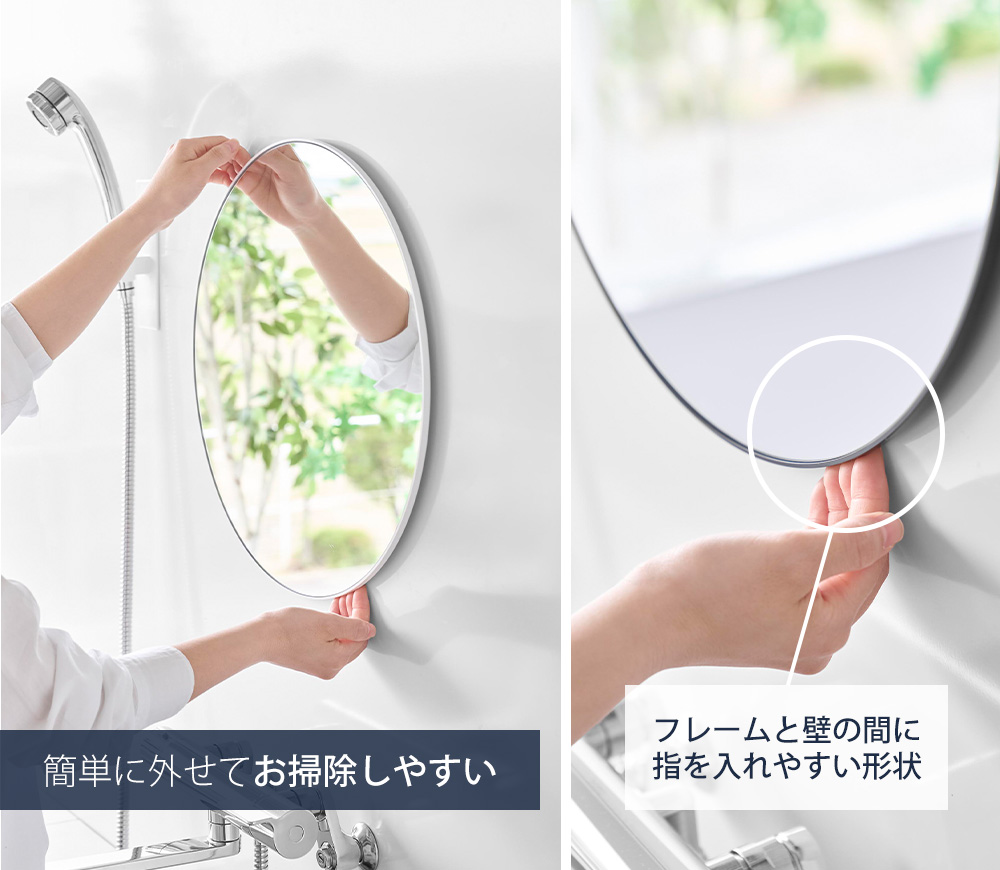 フレームと壁の間に指を入れやすい形状になっており、簡単に外すことができるので、日々のお掃除が楽になります。