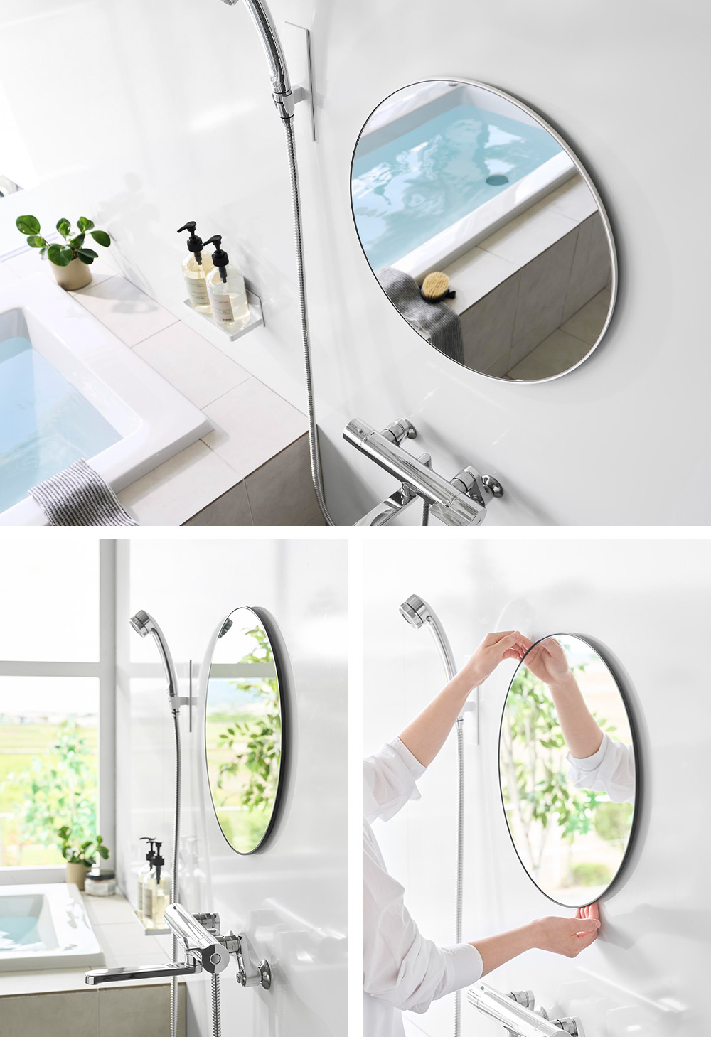 | 鏡のないお風呂にマグネットで取り付けられる! |