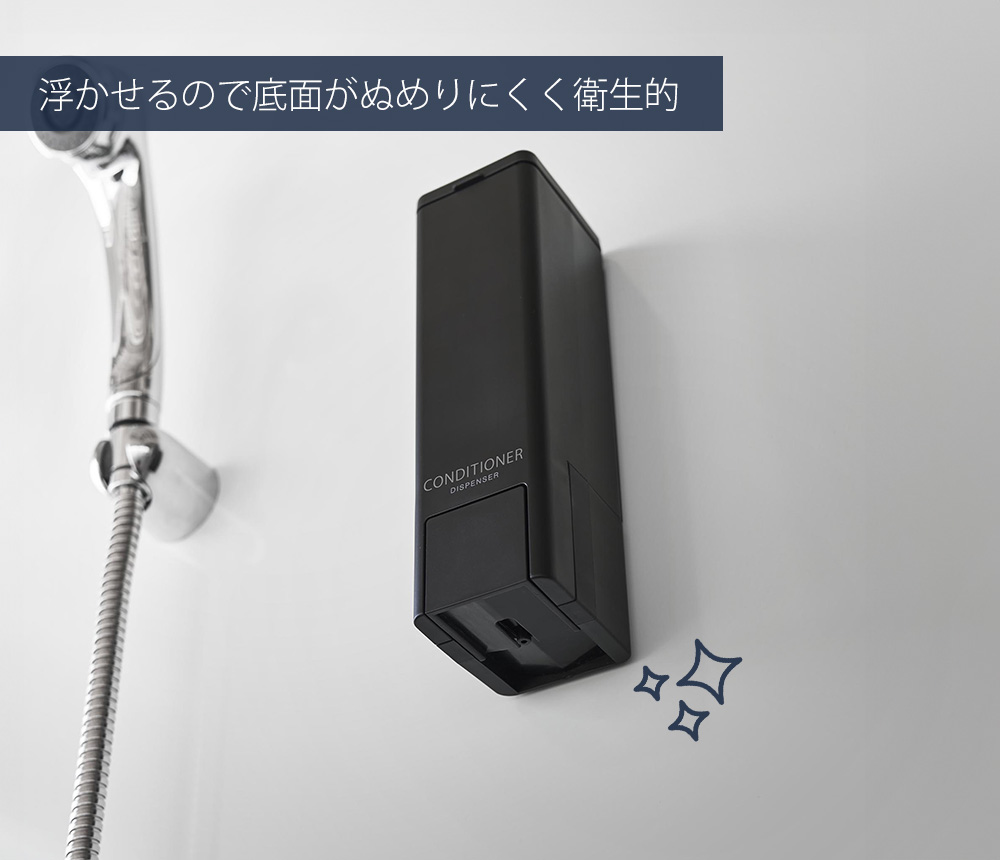 宙に浮かせるからディスペンサーの底がぬめらずとても衛生的。お掃除のひと手間が減らせます。
