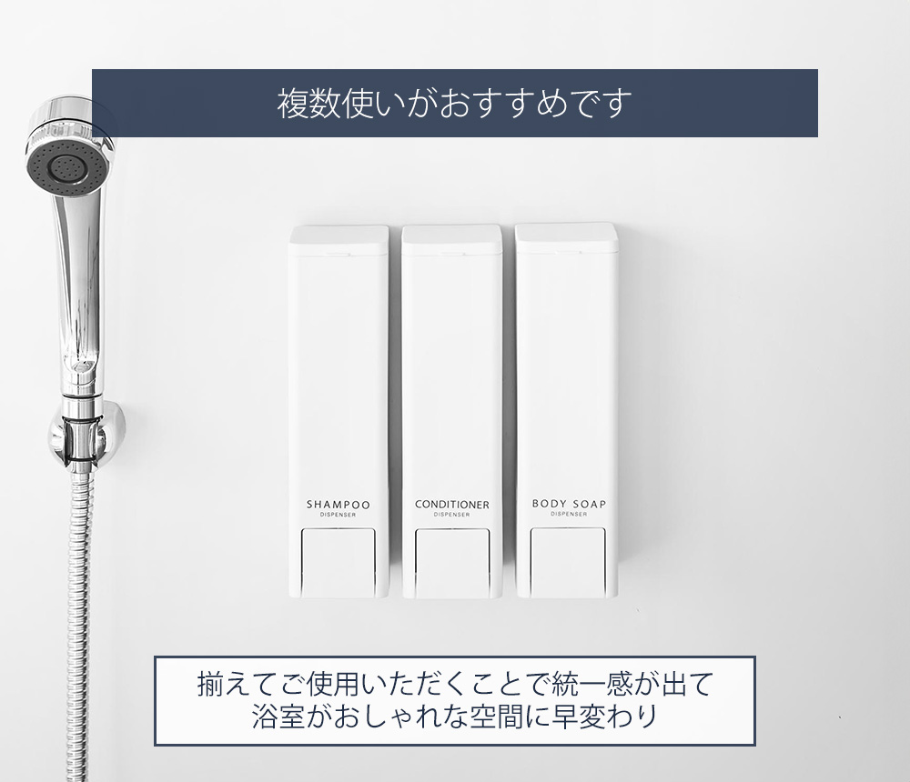 2個、3個と複数使いがおすすめです。揃えてご使用いただくことで統一感が出て、浴室がすっきりおしゃれな空間になります。