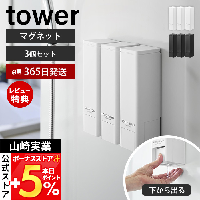山崎実業 公式 タワー 下から出るマグネットディスペンサー tower シャンプー コンディショナー ボディーソープ 3点セット 詰め替え 10290