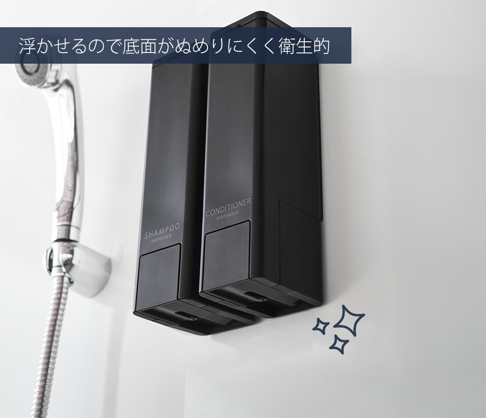 宙に浮かせるからディスペンサーの底がぬめらずとても衛生的。お掃除のひと手間が減らせます。