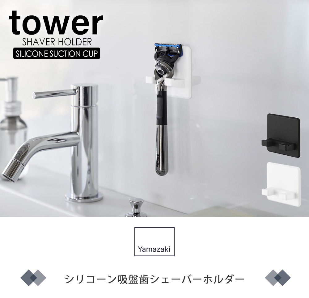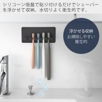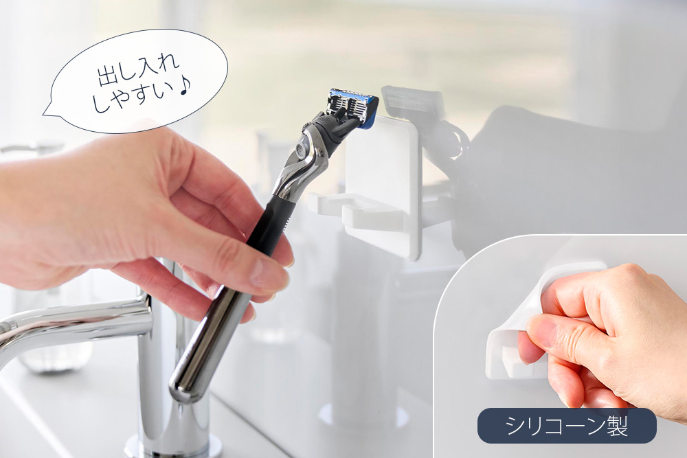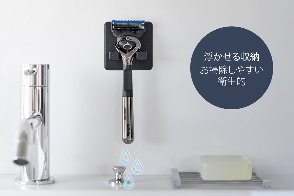 シリコーン吸盤で取り付けたい場所に貼り付けるだけで、シェーバーを浮かせて収納できます。水切り良く衛生的です。