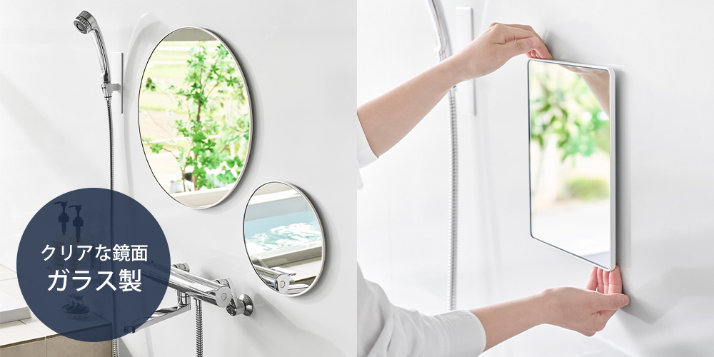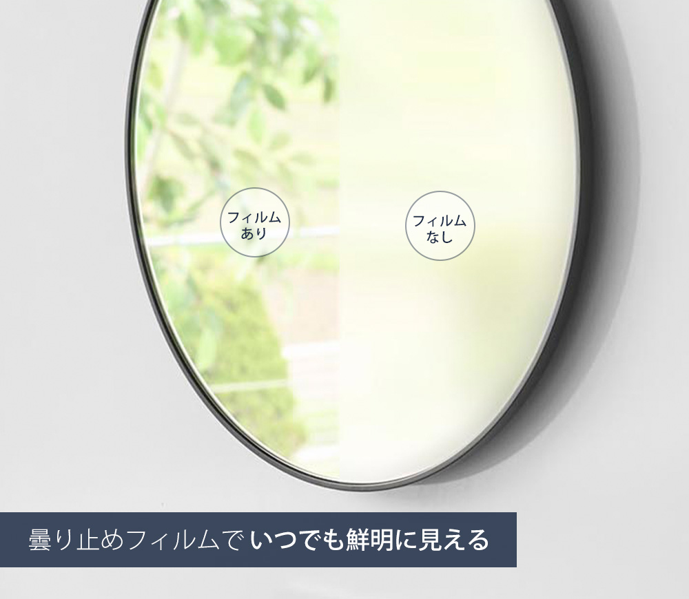 鏡面に曇り止めフィルムを粘着加工しているので、シャワー中の気になる曇りを防ぐことができます。さらに、万が一の場合の飛散防止にもなります。