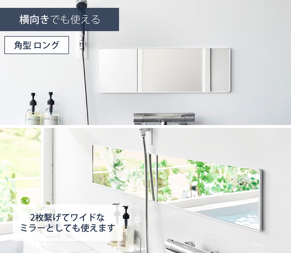角型ロングは横向きにしてご使用いただけます。2枚繋げてさらにワイドなミラーとしても活用できます。