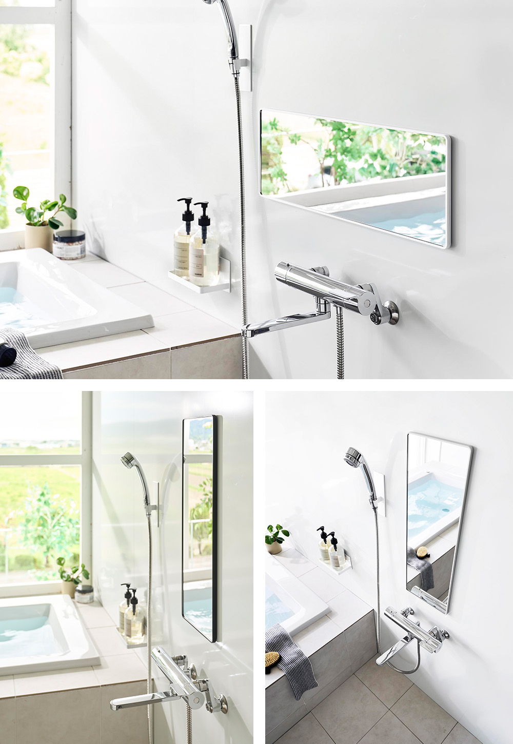 | 鏡のないお風呂にマグネットで取り付けられる! |