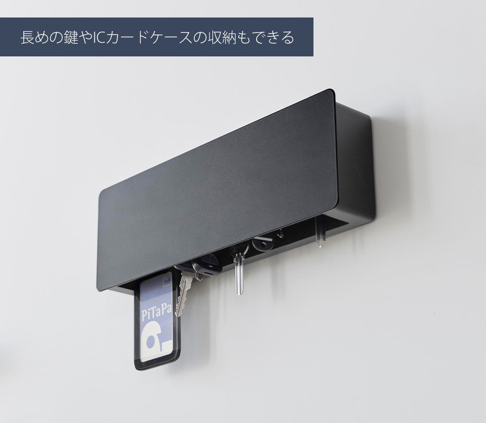下部が開いた設計なので、長めの鍵やICカードケースなども収納できます。様々な種類の鍵を収納することができて便利です。