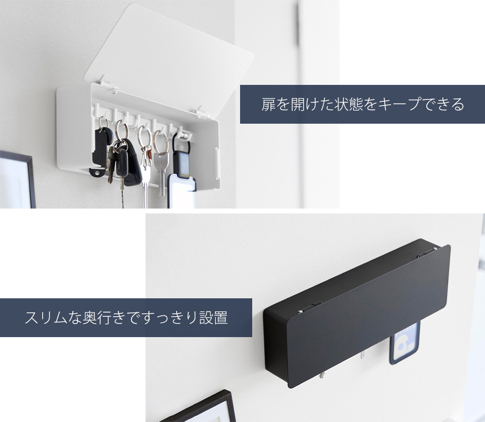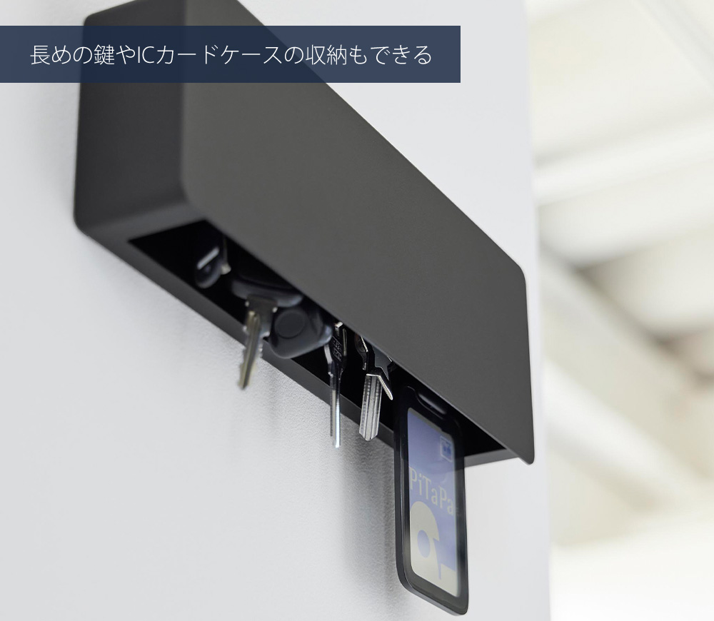下部が開いた設計なので、長めの鍵やICカードケースなども収納できます。様々な種類の鍵を収納することができて便利です。