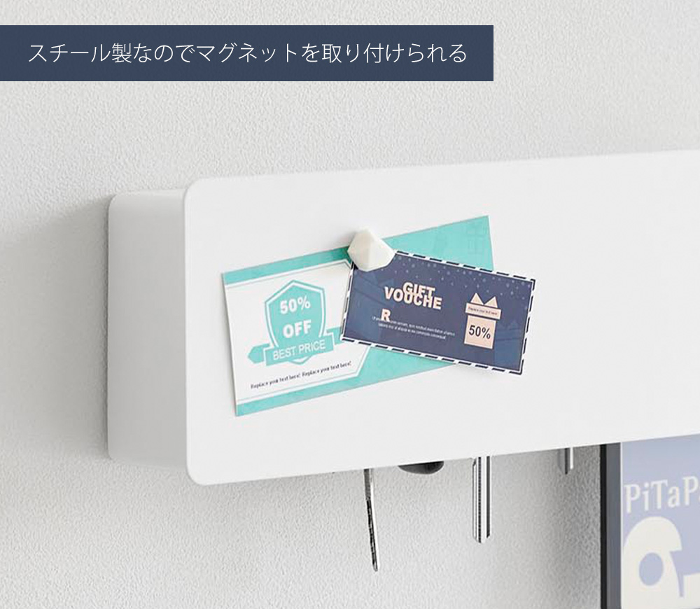 スチール製なので、マグネットが取り付けられます。メモなどを留めておくことができるので、忘れ物防止としても役立ちます。