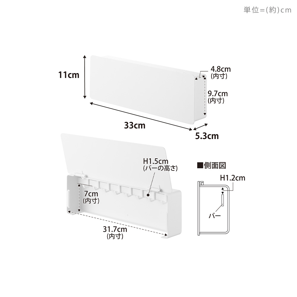 玄関やリビングなどの壁面に、付属の石こうボードピンまたは木ネジで取り付けて、鍵の定位置にできる鍵収納ボックス。家の鍵、車の鍵、自転車の鍵、カードキーなど、なくしやすい鍵を一括収納できます。高級感のあるスチール製でインテリアに馴染みます。