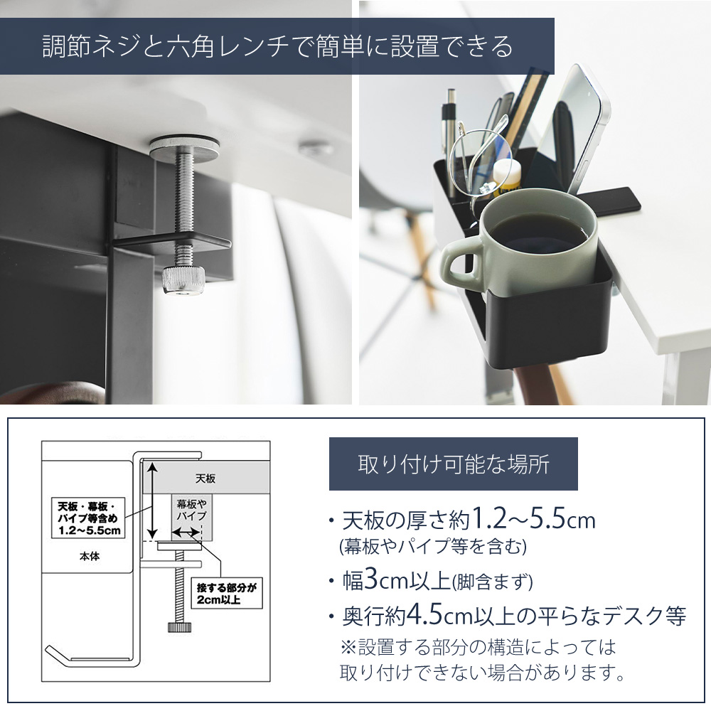 調節ネジでテーブル・デスクに、簡単に取り付けられるマルチラックが登場。限られたスペースでも、小物を定位置に置いておけるので、デスクやテーブルの上を広々と使えます。スマートフォン、リモコン、眼鏡、マグカップ、ヘッドホンなどの小物をまとめてすっきり収納できます。
