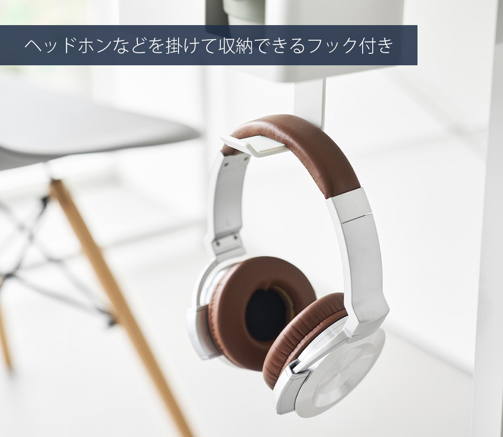 ラックの下側にはフックが付いており、置き場所に困りがちなヘッドホンなどの小物も収納可能です。