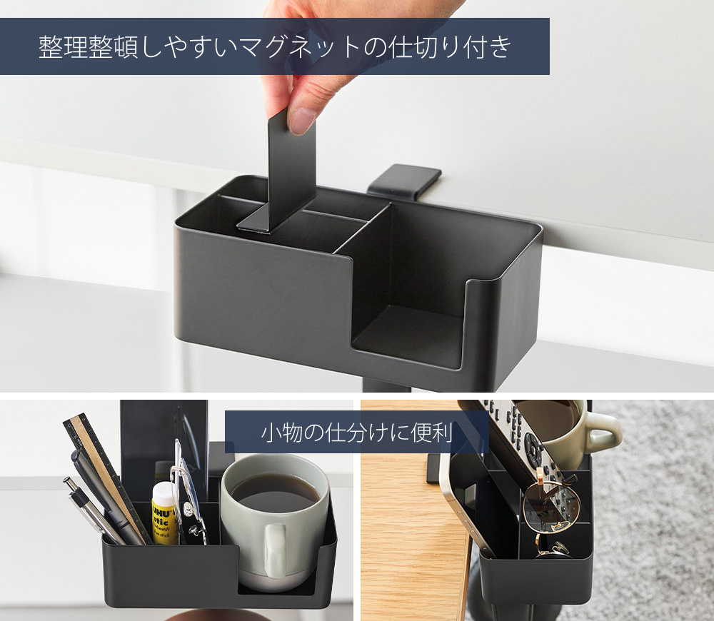小物収納部にはマグネットの仕切りが付いていて、文房具を小分けにして入れたり、サイズの違う物を分けて収納したい時に便利です。