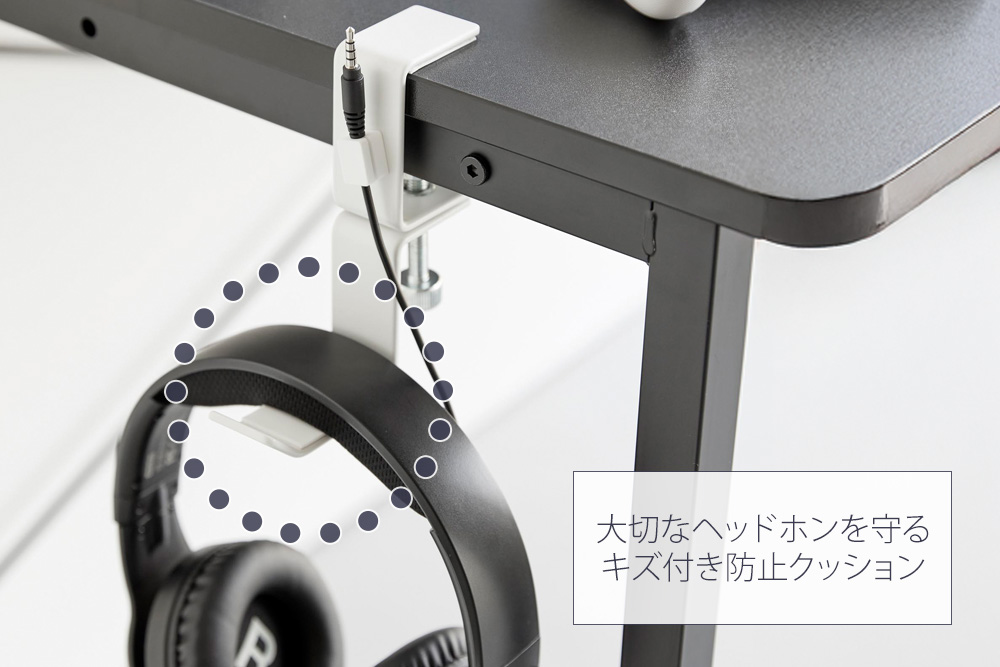 引っ掛け部分にはキズ付き防止クッションが取り付けられています。大切なヘッドホンをキズ付きから守ります。