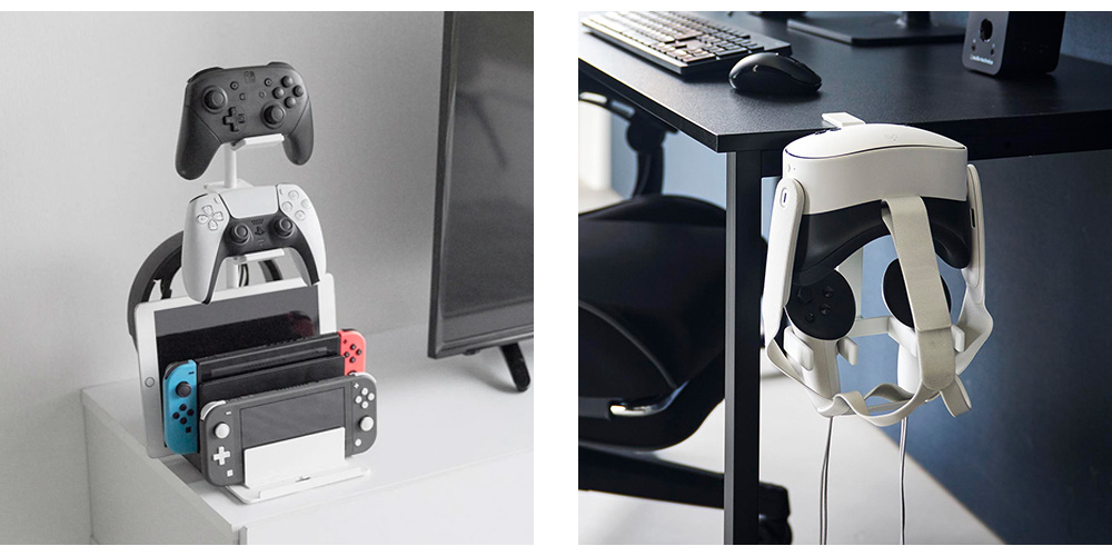 >> 仕切りが動くゲーム機&コントローラースタンド | >> デスク横VRゴーグル&コントローラー収納ラック |