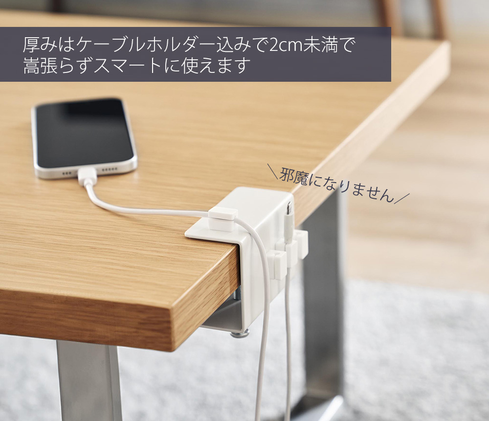 デスクやテーブルに本体を取り付ければmケーブルホルダー込みで厚みが2cmもないので、嵩張りません。