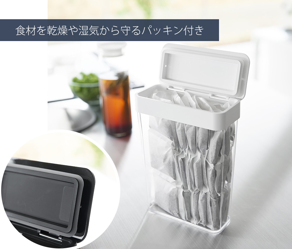 蓋にはパッキンが付いてるので、開封後の袋入り砂糖や塩、乾物などを湿気や乾燥から守り、安心して収納できます。※完全密閉ではありませんのでご注意ください。