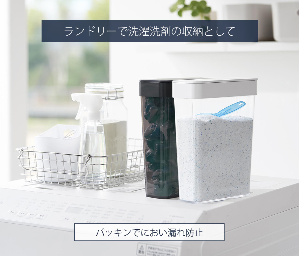 ランドリールームで洗濯用の洗剤ボールや粉洗剤の収納ケースとしてのご使用もおすすめです。パッキンが洗剤のにおい漏れを防ぎます。
