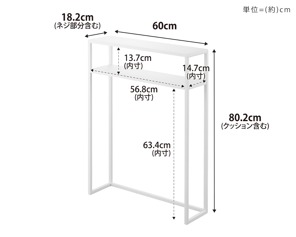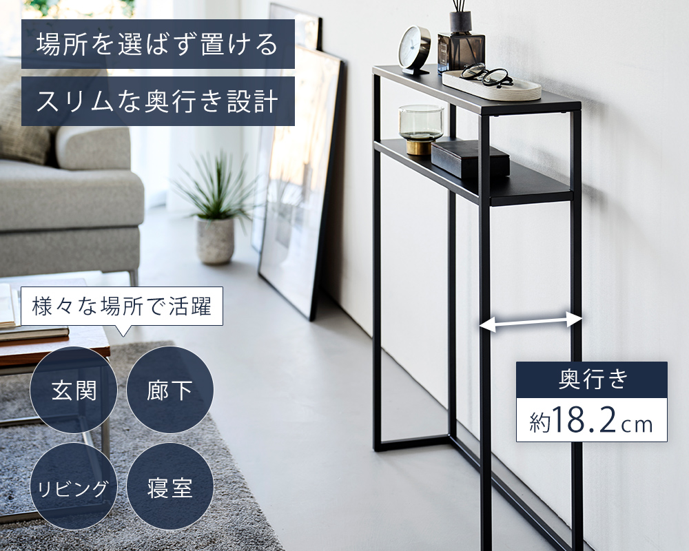 奥行き約18cmのスリム設計で、圧迫感を与えにくいのが特長。廊下や壁際などの限られたスペースにも設置しやすく、生活動線を邪魔しにくい形状です。