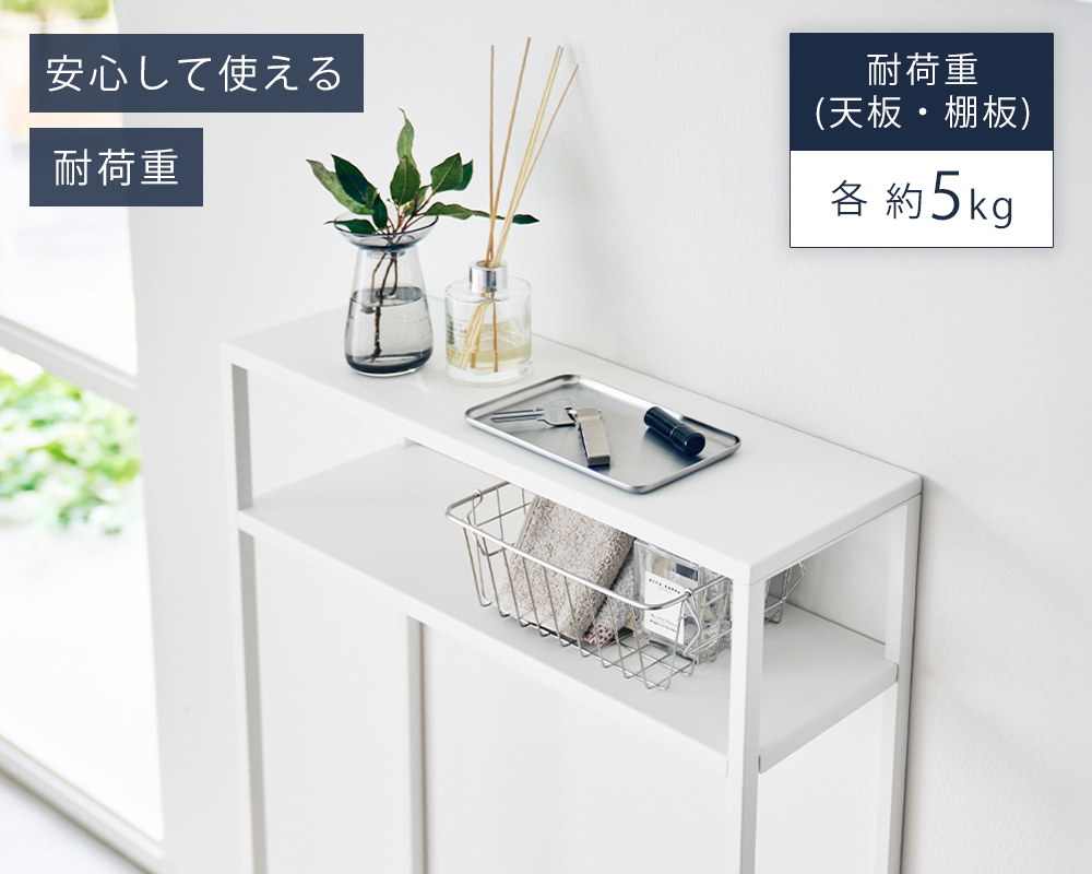 天板と棚の耐荷重は各5kg。しっかりとした作りで、ディスプレイや収納にも安心して使用できます。