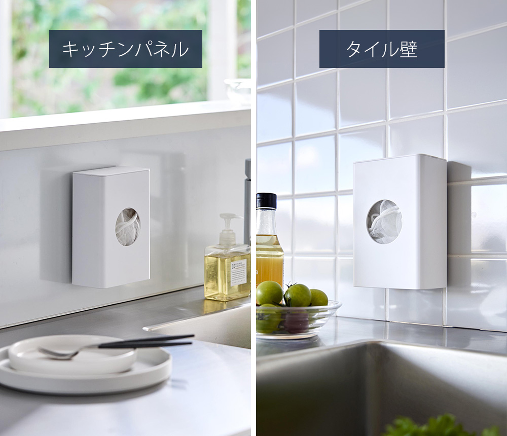 マグネットが付かない壁でも安心。光沢のある洗面所などの壁面、キッチンのタイル壁などに取り付けが可能です。空きスペース部分を収納として有効活用できます。