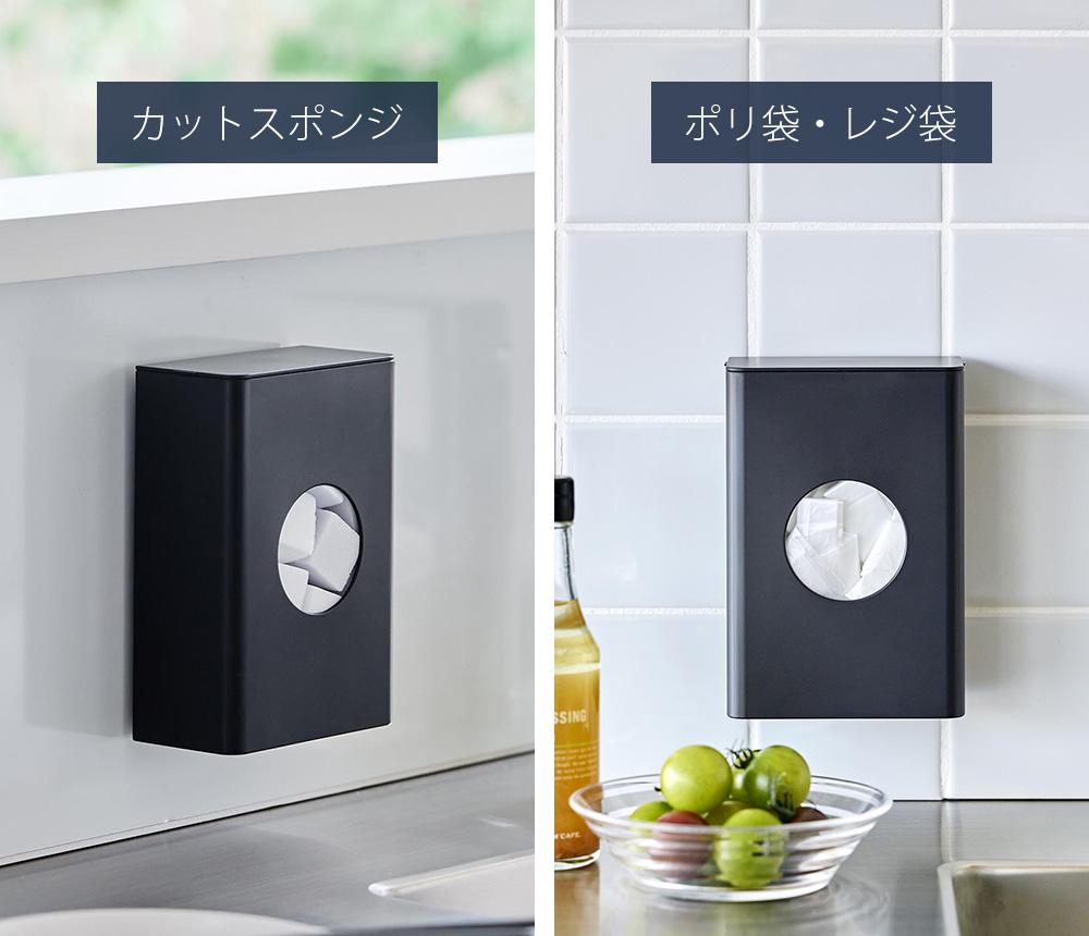 水切りネット以外にカットスポンジや、レジ袋・ポリ袋の収納に便利です。