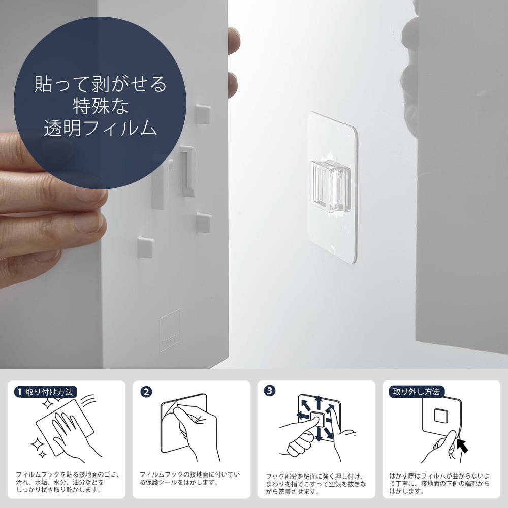 ※フィルムフックは消耗品です。何度もはがしたり、洗うことによって接着力は低下します。