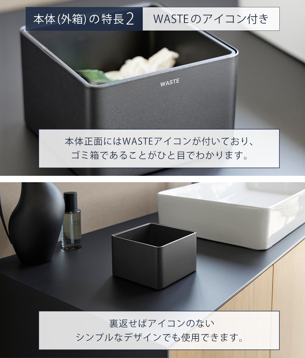 正面には「WASTE」のアイコンを配置。シンプルな中にもアクセントがあり、ゴミ箱であることがひと目で分かります。