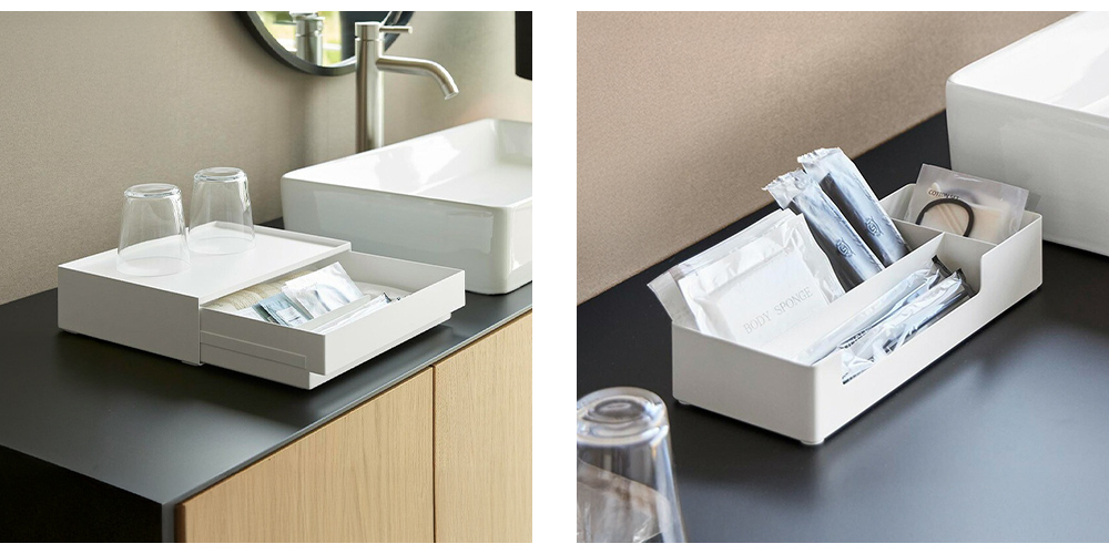 >> トレー付きアメニティ引き出し収納 タワー | >> 仕切り付きアメニティ収納 タワー |