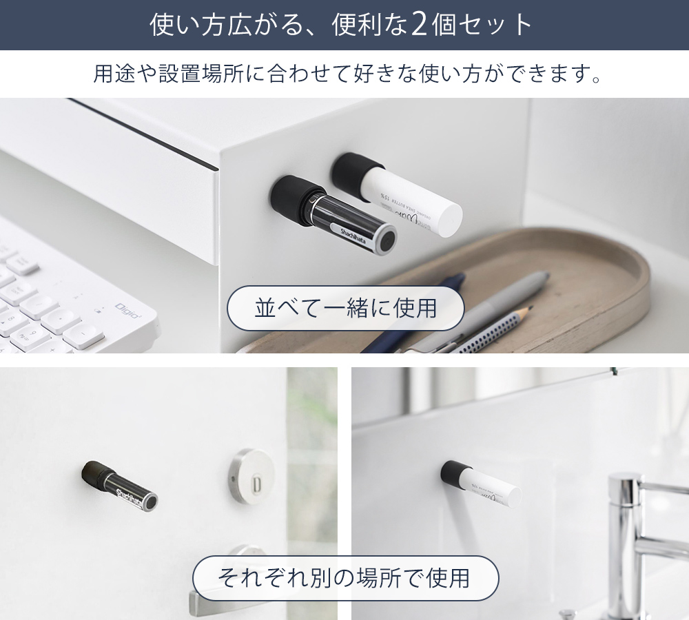 2個セットなので、並べて使ったり、それぞれ別の場所に設置したりと、暮らしに合わせて使い分けできます。