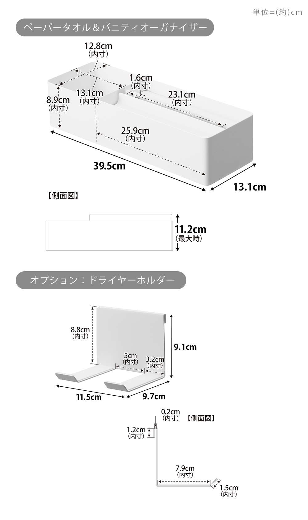 | ドライヤーホルダー | 約11.5cm | 約9.7cm | 約9.1cm |