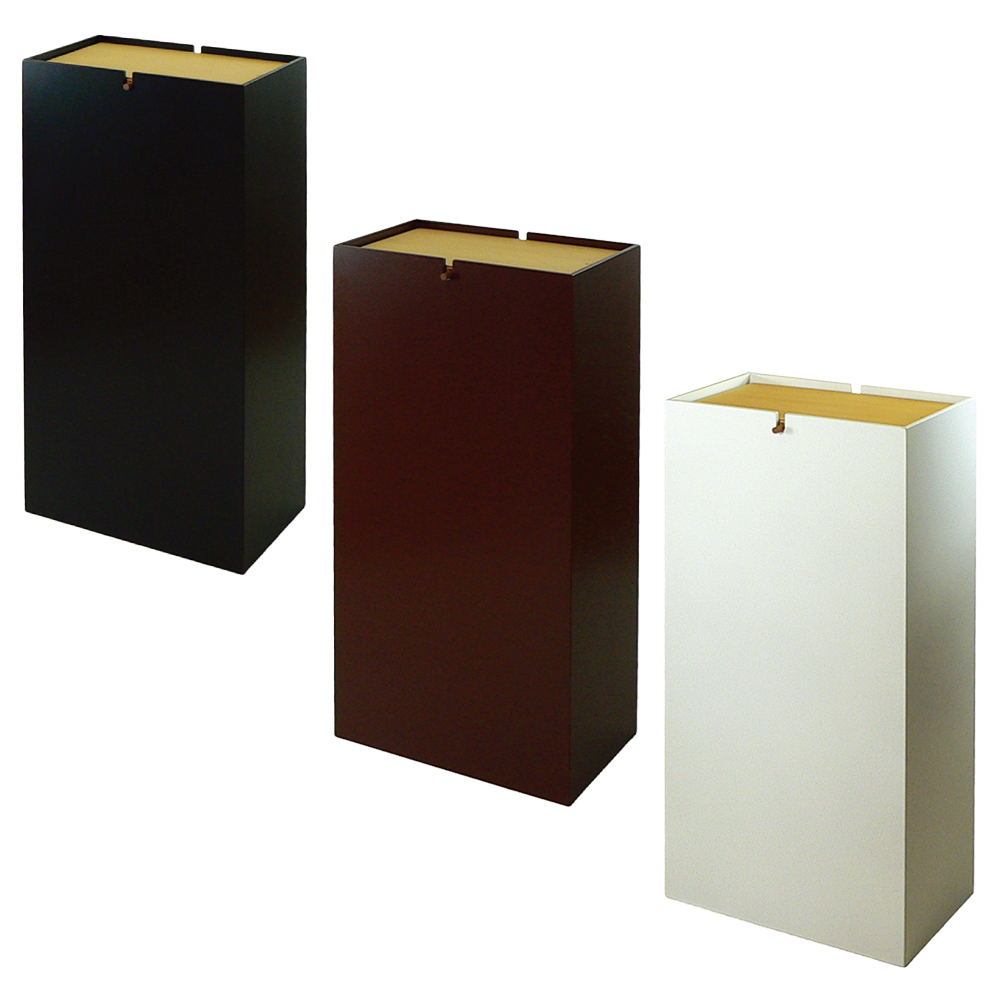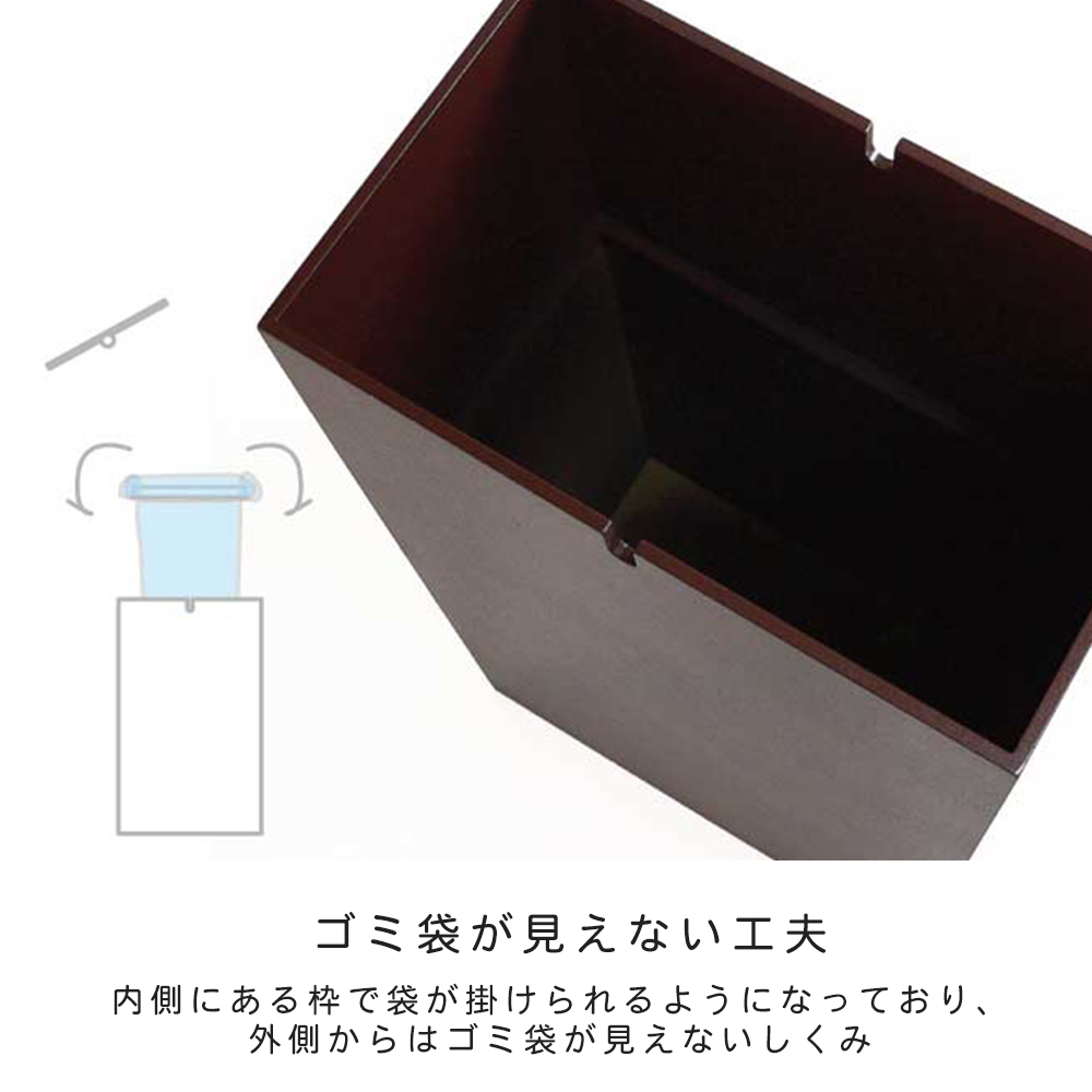 装飾を極限まで抑えたミニマムな直線のデザインの中に、木のぬくもりを感じる有機的な部分がうまくかけ合わさったモダンだけど優しさが感じられる上品な印象のダストボックス。