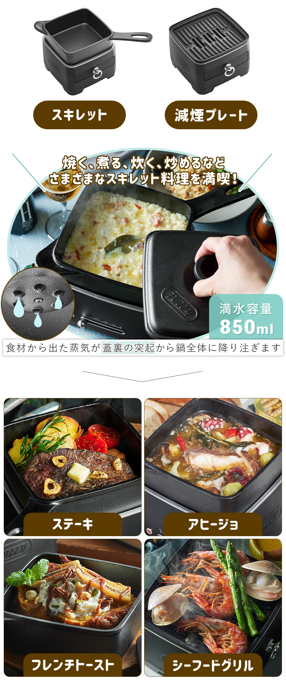 | スキレット&減煙プレート 2通りの調理が可能 |