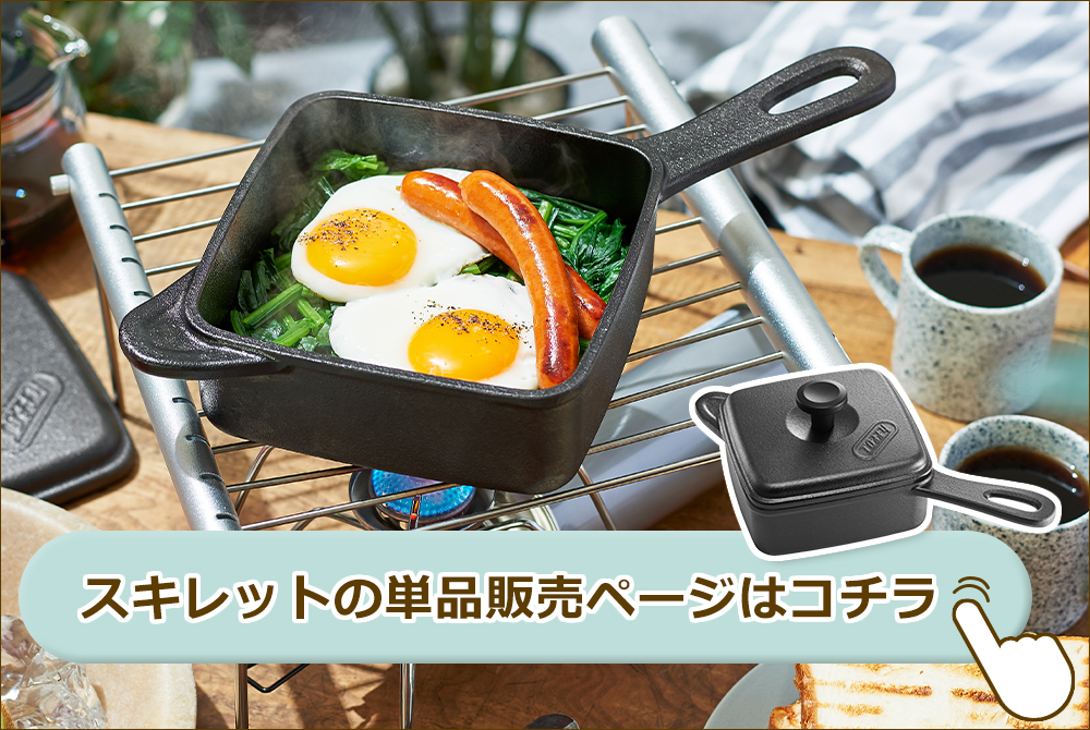 スキレットはガス・IHどちらでも使用できるので、おうちのキッチンでの利用や、アウトドアシーンでも活躍します。