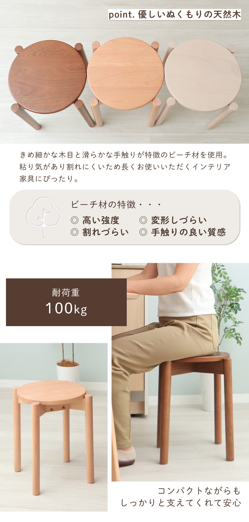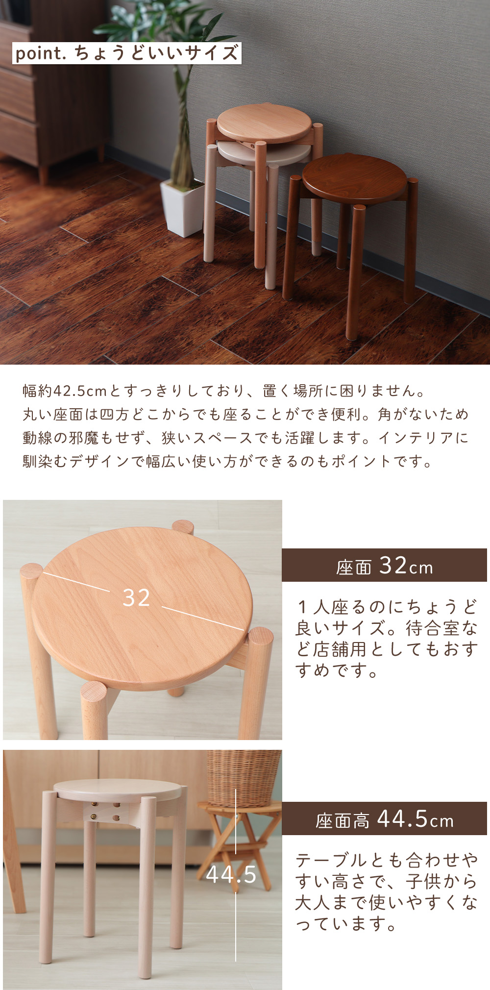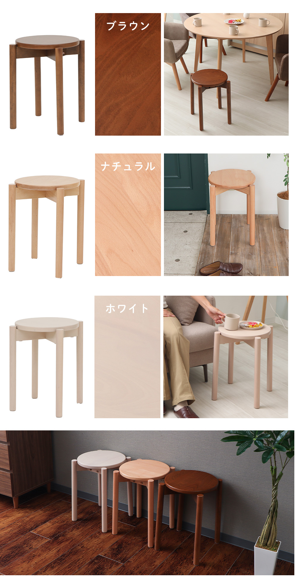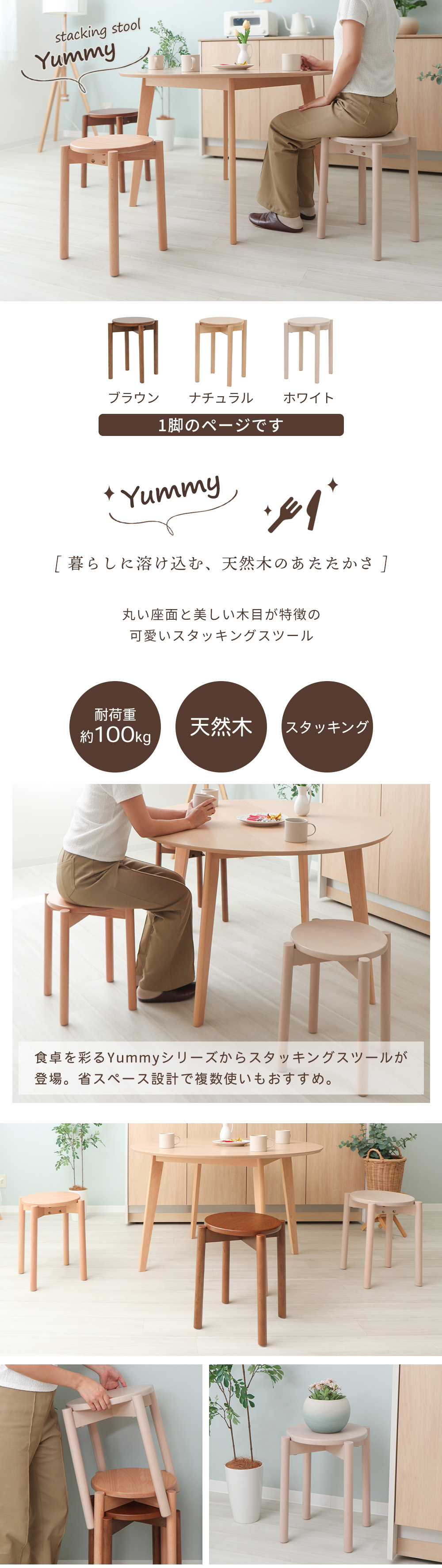 スタッキングスツール 椅子 収納 1脚 木製 天然木 おしゃれ 北欧 円形 丸型 ラウンド チェア イス 腰掛け 軽量 ヤミー Yummy ヤマソロ
