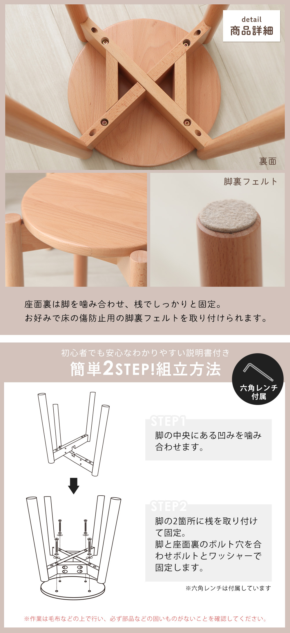 付属品 六角レンチ、フェルト小(スタッキング時の傷防止用)、フェルト大(脚裏用)