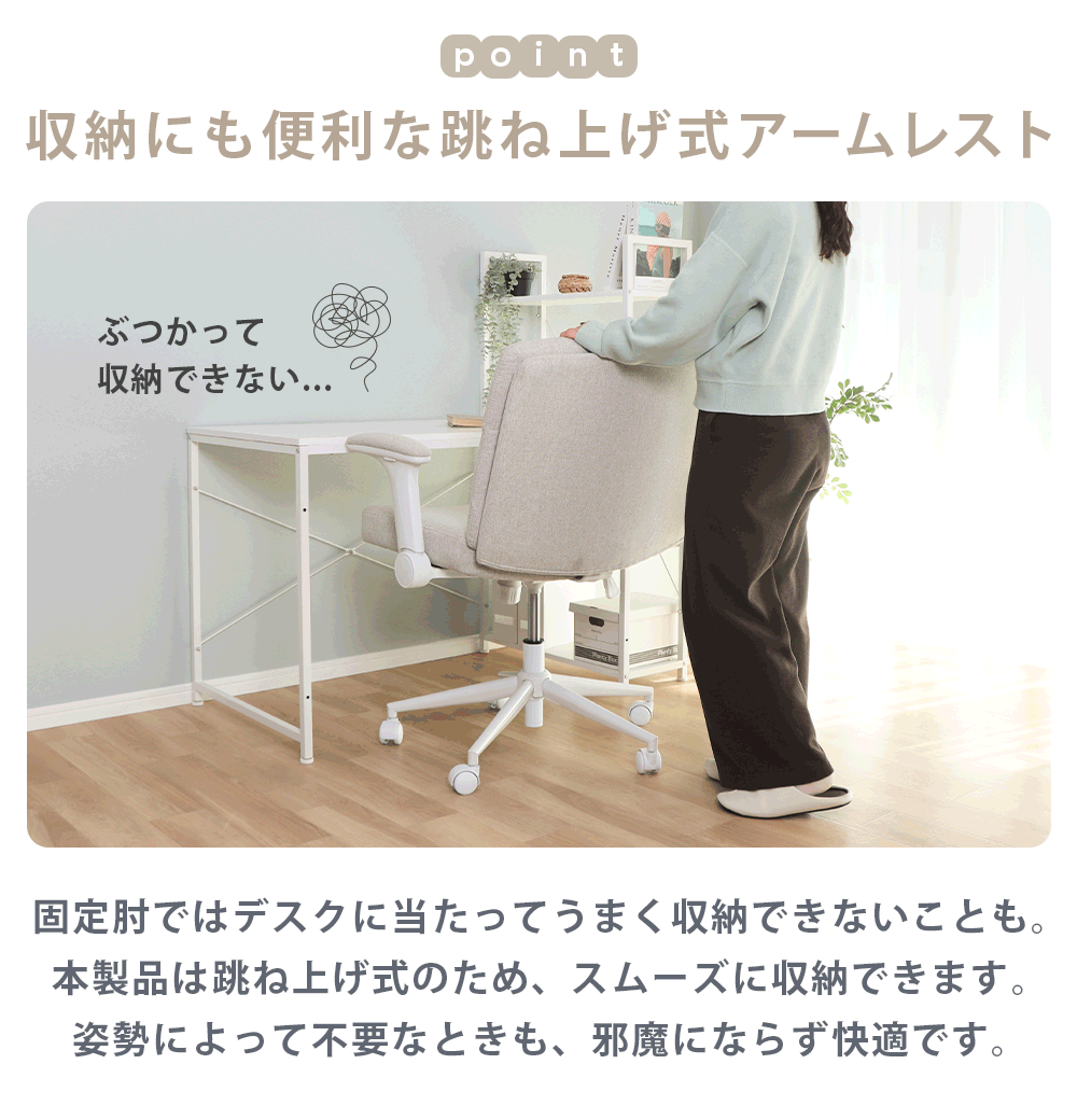 商品名肘上げ式デスクチェア【Comode(コモデ)】