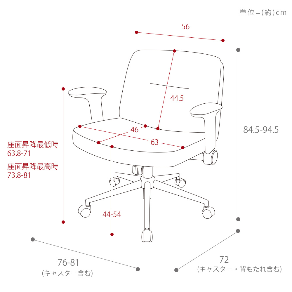 サイズ本体:(約)幅76〜81×奥行72×高さ84.5〜94.5cm