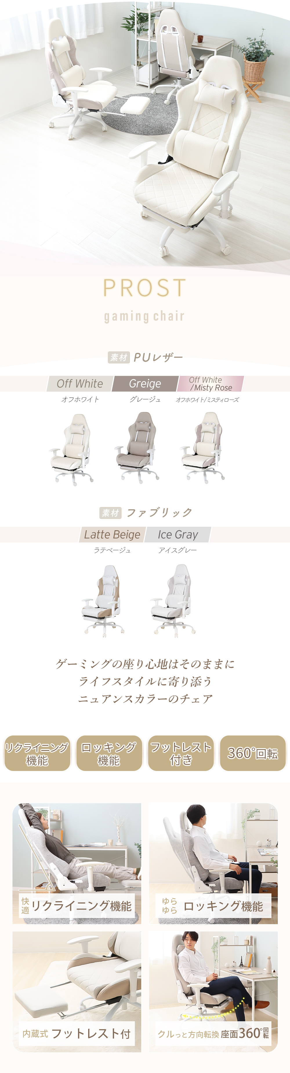商品名フットレスト付ゲーミングチェア PROST(プロスト)
