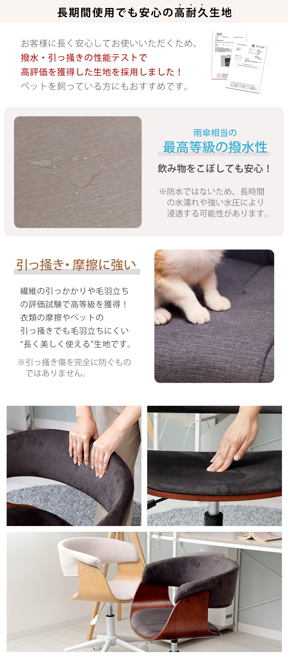 成型合板×ファブリックのナチュラルデザインで、生地は撥水性能のある高耐久生地を使用。