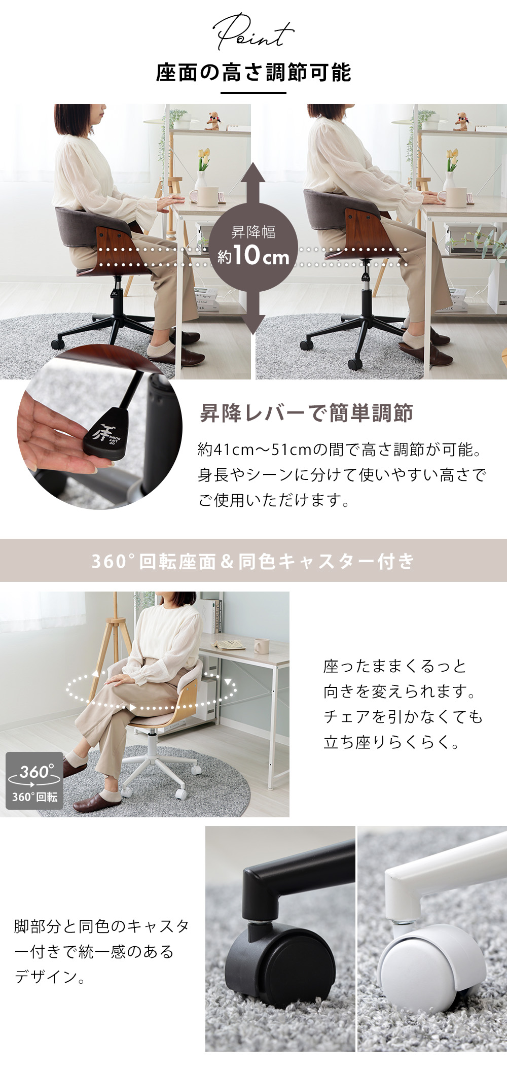 4/15はP+9%! デスクチェア オフィス パソコン 回転 昇降 背もたれ おしゃれ お掃除ロボット対応 引っ掛けられる 浮く パーシック Perchic ヤマソロ