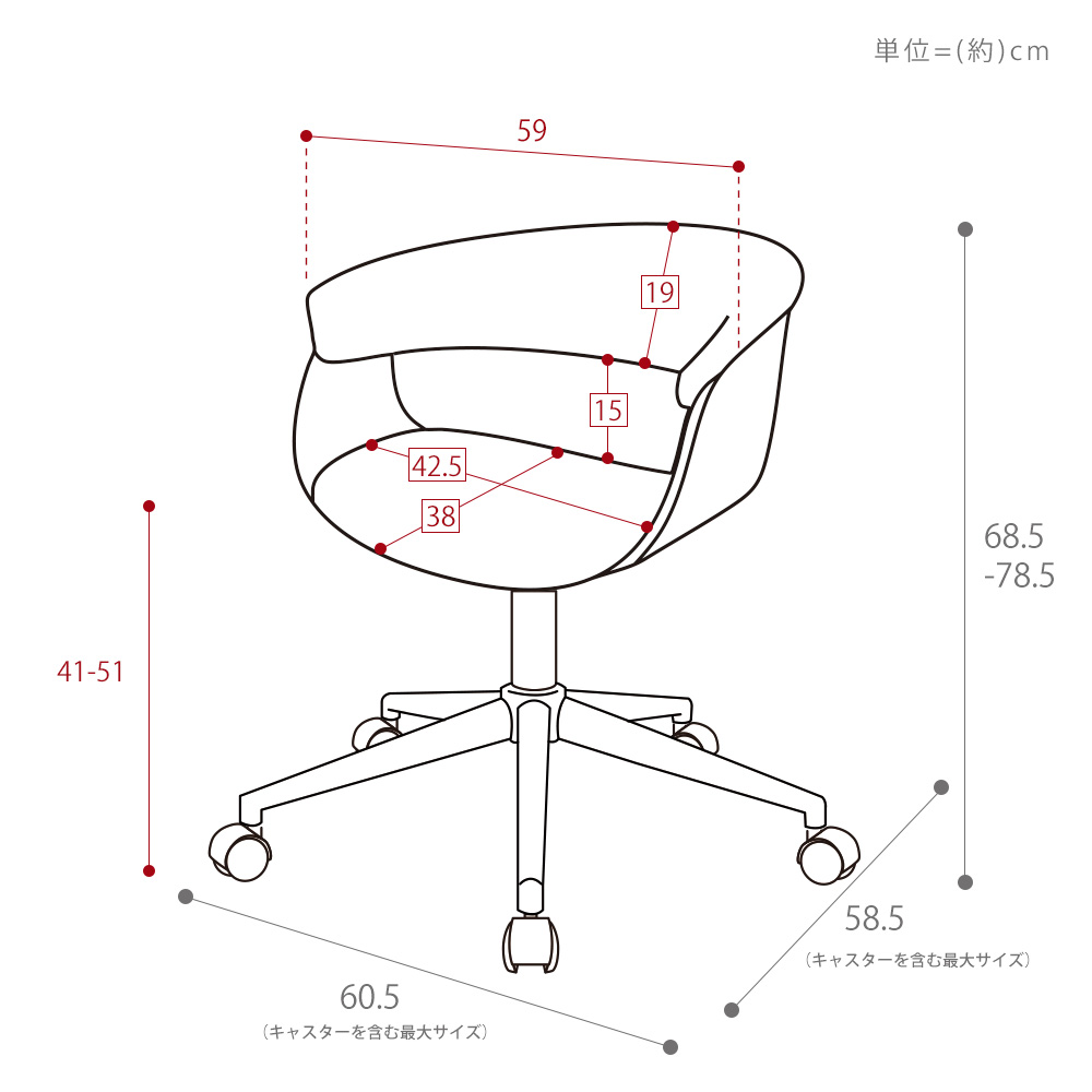 サイズ(約)幅60.5×奥行58.5×高さ68.5-78.5cm