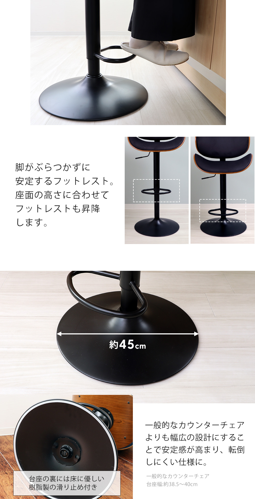| 備考 | お客様組み立て品(工具不要) ※汗や水で服が湿った状態で座り続けると、色移りが起こる場合がございますのでご注意くださいませ。※店舗内の全商品において、サイズ表記は(約)での表記でございます。±1〜2cm程度の誤差は許容範囲内と判断し出荷しておりますので、予めご了承下さい。 ※個体差やロット・モニター環境により、色味やサイズが若干異なる場合がございます。予めご了承の上ご注文くださいませ。 【お手入れ方法について】 汚れが目立つ場合は、布に薄めた中性洗剤を湿らせて固く絞り、汚れが広がらない様にたたき拭きをしてください。(汚れの状態によっては除去できないものもあります。) 【色の見え方について】 ネイビーはスウェード調のため光の当たり方や毛の流れ、モニター環境、照明等により色の見え方が異なりますのでご注意ください。 ※ご使用状況に応じて座面を昇降するの際の摩擦によりガスシリンダーの表面部分に黒い筋のような跡が残る場合がございますが、不良ではございません。予めご了承お願い致します。 【FAQ】こちらの商品の特徴・注意事項について ※必ずお読みください※ |