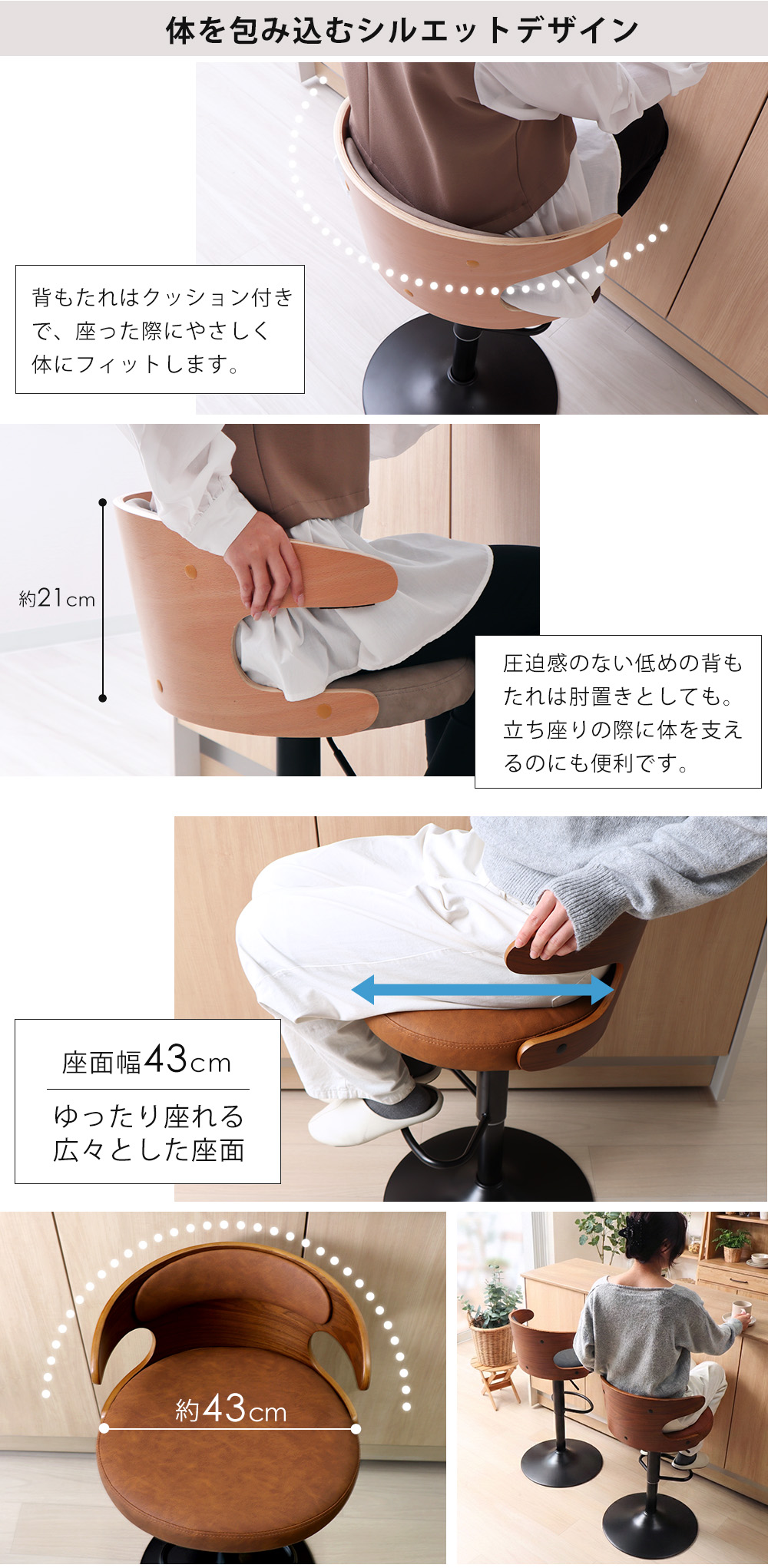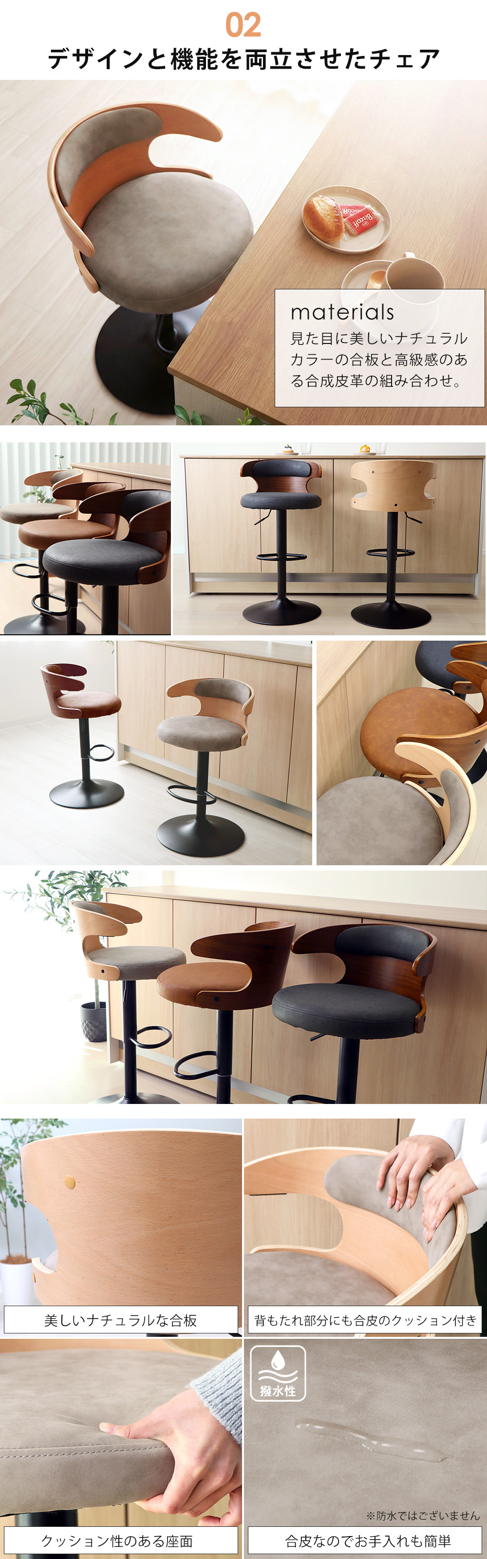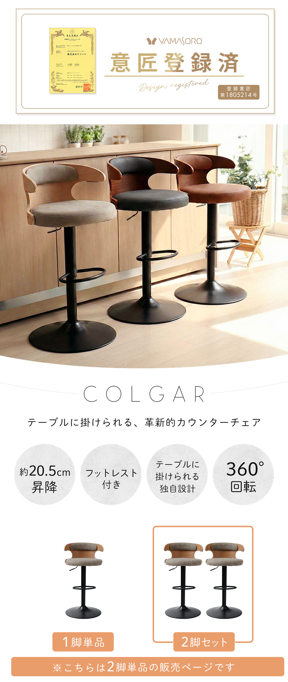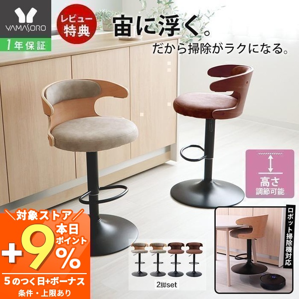 4/15はP+9%! バーチェア カウンター 2脚セット 回転 昇降 背もたれ おしゃれ 曲木 お掃除ロボット対応 引っ掛けられる Colgar コルガー ヤマソロ