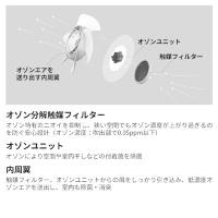 ファン送風により室内の空気を触媒フィルターを通過させることで、脱臭効果を発揮しながら、オゾン生成ユニットから放出された室内のオゾンの濃度を調節します。オゾン特有のニオイを抑制し、狭い空間でもオゾン濃度が上がり過ぎるのを防ぐ安心設計です。試験により、吹出部でのオゾン濃度は0.05ppm以下になります。それは日本空気清浄協会が定める室内での許容濃度平均値で、人体に影響はありませんので、ご安心にお使いいただけます。