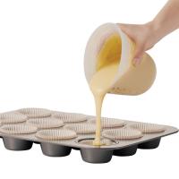 | 柔らかいシリコン製でカップの両側を押せばせまい所にも注ぎやすくなるシリコンメジャーカップ。耐熱性が高く電子レンジでも使用できます。混ぜて、はかって、レンジにかけて、注ぐの一連の作業がこれひとつで完了します。カップが熱くなりにくい特殊なハニカム構造でレンジにかけても熱くなりにくく、滑り止め効果も加わって注ぎやすいカップです。 漂白剤、食器洗い乾燥機がご使用いただけます。 | ||