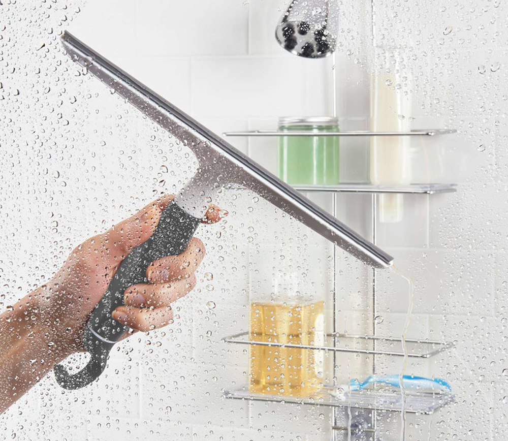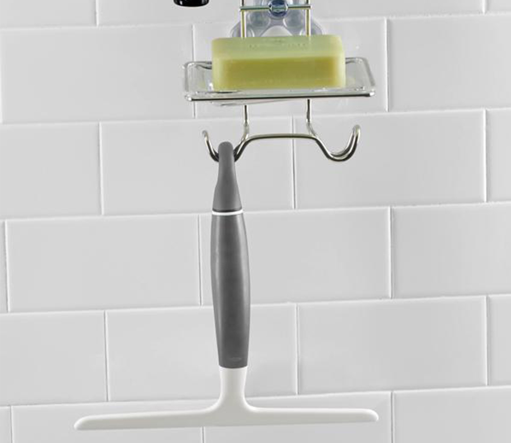| 車のワイパーからヒントを得て開発された水切り部は丈夫で細かい部分の水切りもでき、筋が入りにくいのが特徴。とても柔らかいので、窓や鏡の面にぴったり沿うことができ、スムーズに水切りできます。 柔らかくて持ちやすいハンドルは濡れた手でも滑りにくく、柔軟性のある回転するフック部を使えば、シャワーヘッドやラック、タオルハンガーなどいろいろな場所にかけて収納することが可能。 | ||
