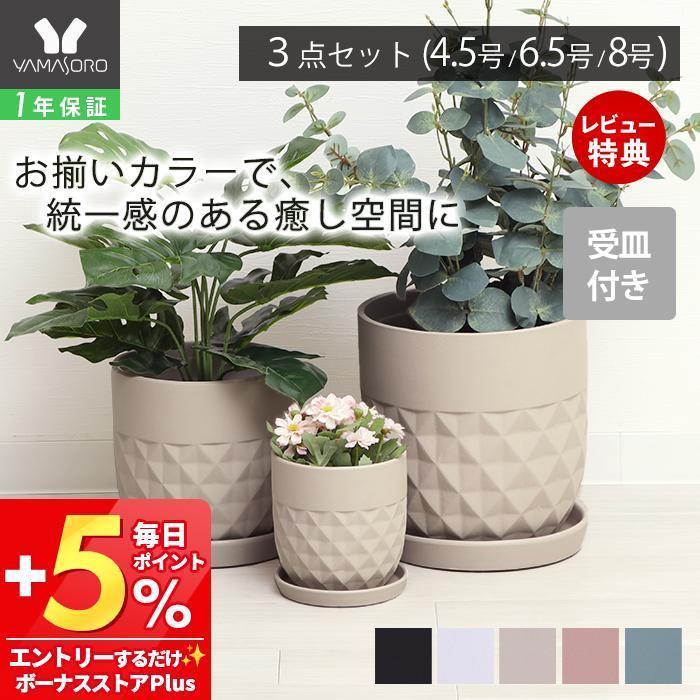 植木鉢 フラワーポット 観葉植物 セラミック 3個セット 大 中 小 プランター 屋外 内 カバー 14 20 25cm クレッシェル crescere ヤマソロ
