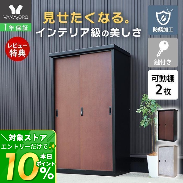 3/20はP+10%還元! 収納庫 スチール 鍵付き スタンダード 可動棚 2枚 DEBARA デバラ 屋外 防錆 大容量 お洒落 木目調 モルタル 物置 倉庫 ベランダ ゴルフ