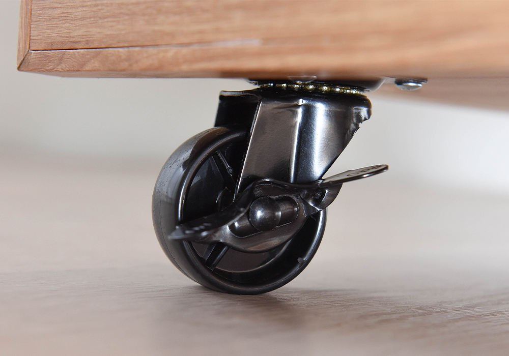ワゴンについたキャスターは丈夫な金属製となっており、物を入れたままでもスムーズに動かせます。 |